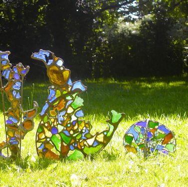 Las esculturas de jardín de Maru, con sus vitrales de colores son perfectas para una ventana soleada o con una luz de fondo como piezas centrales en su sala o expuestas en su jardín donde el sol de la mañana o de la tarde puede realmente mostrar su esplendor. Las obras coloridas de Maru no dejan de provocar sueños despiertos, sonrisas e interes