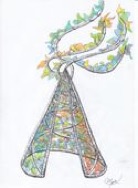 Lenguaje plástico compuesto de módulos ... Pentagramas escritos en el espacio creando ambientes internos, conducentes a sueños despiertos, y externos, como los árboles de la vida bajo las luces mágicas del sol y de la luna ... Estas obras vienen en varios tamaños que van desde 67x40 cm y 200x80 cm ... Ellas viven en libertad como notas musicales ... Campos de flores alpinas ... bosques encantados ... Cada obra se compone de 6 paneles de hierro retorcido, doblado en forma de bastoncillo que se invierte y se solda entre sí ... Luego se tejen las baldosas de vidrio reciclado en un marco abierto formando un vitral de color ligeramente suspendido en su soporte de hierro ...