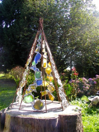 Los tipis de Maru, con sus vitrales de colores son perfectos para una ventana soleada o con una luz de fondo como piezas centrales en su sala o expuestos en su jardín donde el sol de la mañana o de la tarde puede realmente mostrar su esplendor.