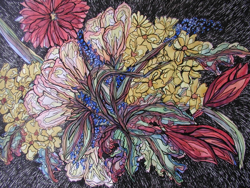 Maru's Watercolors panel No.1 "MULTICOLORED GARDEN” is a Recycled Watercolor Painting.