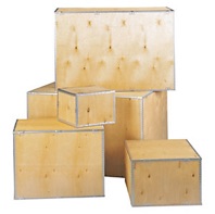 L’artiste utilise des caisses pliantes en bois contreplaqué. Ces caisses en contreplaqué sont super résistantes et capables de résister aux conditions de transport difficiles. Elles sont l'idéal pour fret aérien en raison de leur faible absorption d'humidité, un faible poids et une grande résistance. Ces caisses en bois contreplaqué sont fabriquées à partir d’un contreplaqué d'épaisseur 6 mm, constituées d'un couvercle, de la base avec de rivetés en acier, articulée, armature pliante. Les coûts de stockage sont réduits: en forme plate les caisses n'occupent que 10% de l'espace d'une caisse équivalente djéà assemblée. Produits conformes à la réglementation internationale NIMP15.