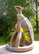Cette sculpture a été savamment conçue avec les techniques du XVIIIème siècle par l’artiste plasticienne Maru Hernandez qui collecte et recycle de magnifiques bouteilles en verre multicolores depuis plus de 30 ans. Elle a toujours ete inspirée par ses propres chats. L’artiste a toujours secouru et adopté tous les chats qui se sont arrêtés à sa porte.