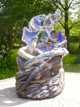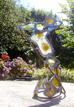 Maru's Lunar Cat No.1 stained glass painted porcelain sculpture is perfect a sunny window, or with a back-light as center piece for your living-room, or set in your garden landscape where morning or afternoon sun can really show off it's splendor. Maru's colorful artwork never fail to provoke day dreaming, elicit smiles and interest.